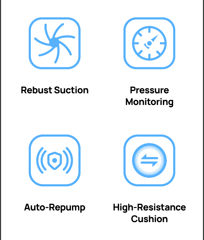 For smooth surfaces, its suction performance is boosted by 35%. For less smooth surfaces, the optional GripMate accessory, equipped with a back cover and pins, offers a secure grip, guaranteeing reliable performance in any scenario.