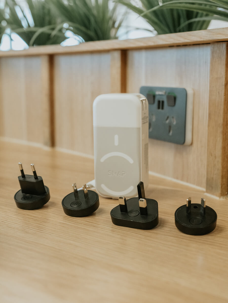 - Interchangeable Adaptors: AU, US, EU & UK.